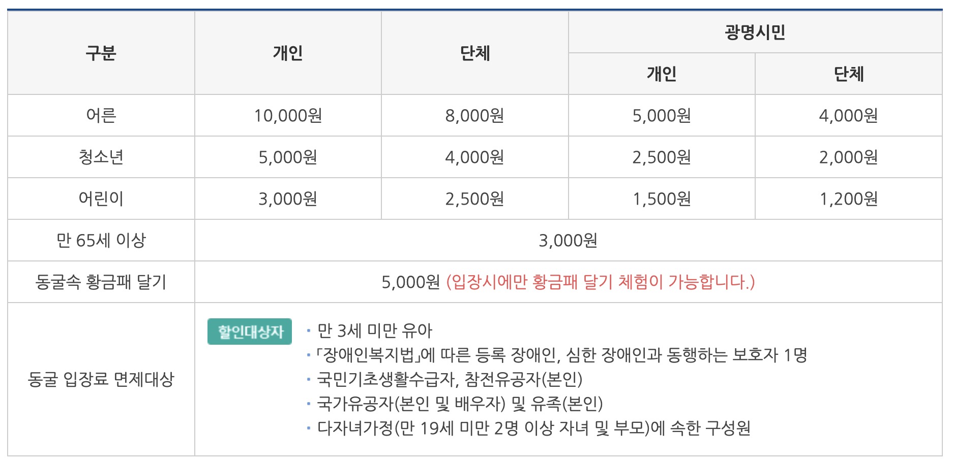 위치 : 경기도 광명시 가학로 85번길 (가학동 27번기) 광명동굴